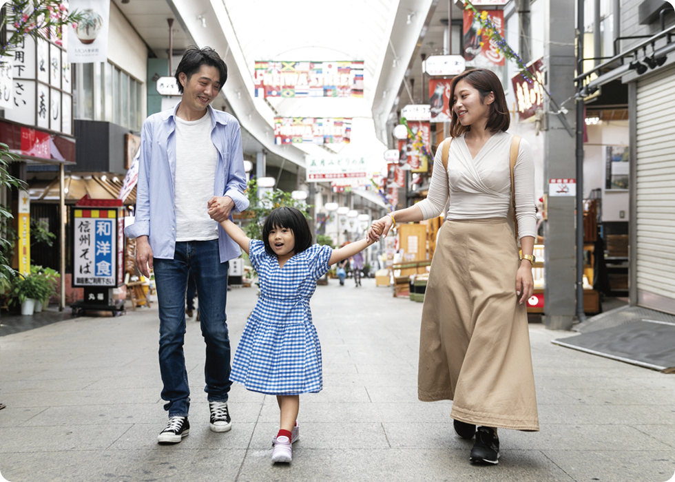 熱海駅からは見えませんが、実は海はすぐそば。歩いてサンビーチまで行くことができます。まずは、熱海駅からお土産店や食事処が並ぶ商店街へ。老舗店から新しいスイーツ店まで、名店ぞろい。