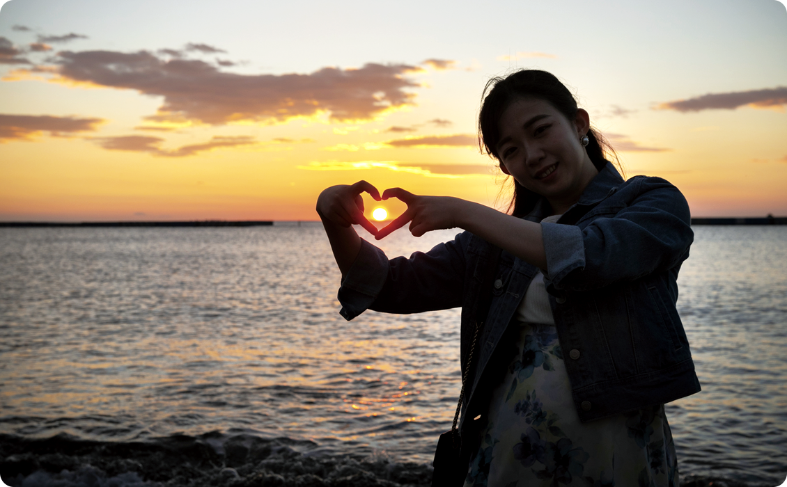 商店街を抜けて細い坂道を下っていくと10分程で海沿いの道に出ることができます。駅前の喧騒とは異なってヤシの木が並ぶ南国の雰囲気。サンビーチは波が穏やかで、癒し度満点!