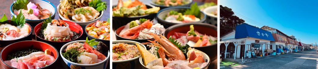 初島港からすぐの海岸沿いに、島の漁師が営む店が立ち並ぶ「食堂街」があります。シーズンごとに水揚げされる旬の魚介や地場野菜を、丼物、定食、麺、刺身などでいただけます。初島ならではの「海味」を堪能しましょう。