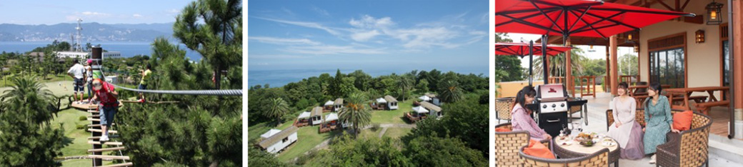 初島は、島の自然を生かしたアクティビティも充実。「PICA初島」では、専用のハーネスを着用して樹の上を渡っていく「初島アドベンチャー SARUTOBI」やアスレチックパーク「VOTAN」などで遊べるほか、グランピング、バーベキューなども楽しめます。このほか、富士山を見ながらの釣りも人気。初島港からすぐの初島漁協直売所では、さおのレンタルやエサの販売を行っています。緑に囲まれた島内をのんびり1周するのもおすすめです。