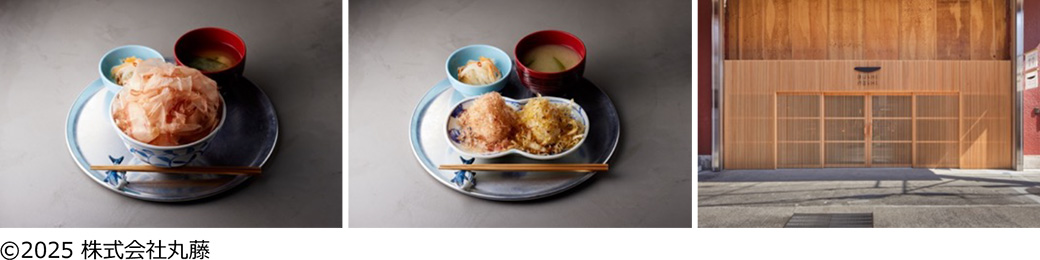 昭和元年創業、網代の削り節製造会社・丸藤本社1階にある「BUSHI MESHI」。モダンな店内はコの字カウンターになっており、お客さんの目の前で削る鰹節と、網代港の新鮮な海の幸をいただくことができます。人気の「ごはんセット」は、削りたてほやほやの鰹節を炊きたてごはんに載せたシンプルなメニュー。旅館や日本料理店から支持される鰹節のおいしさが際立ちます。このほか、出汁茶漬けでいただくお茶漬けやおむすびセットも。お土産にはさまざまな魚種の削り節パックもどうぞ。